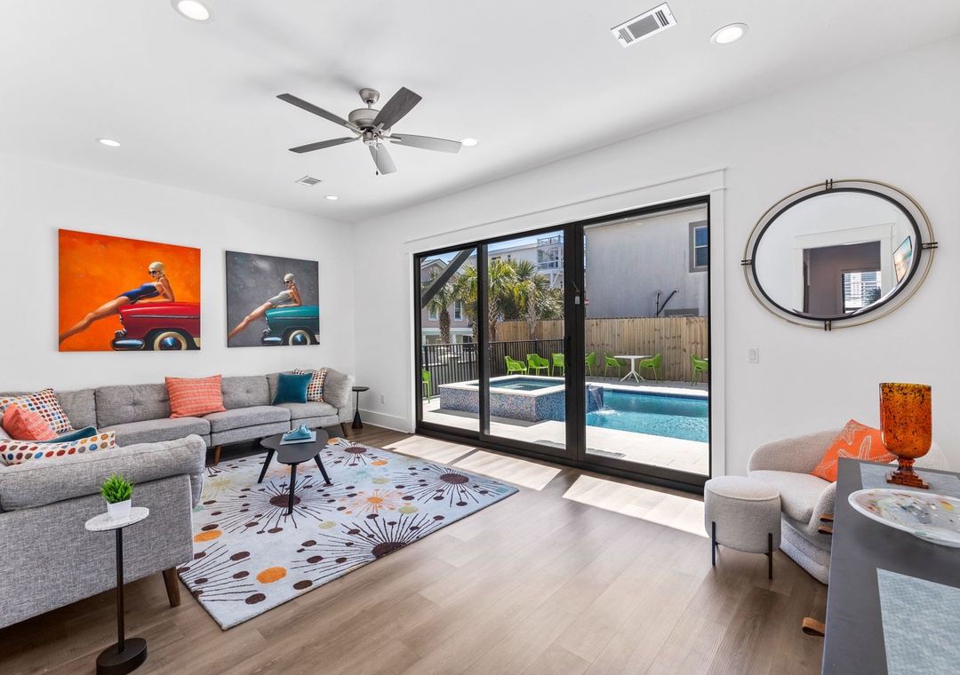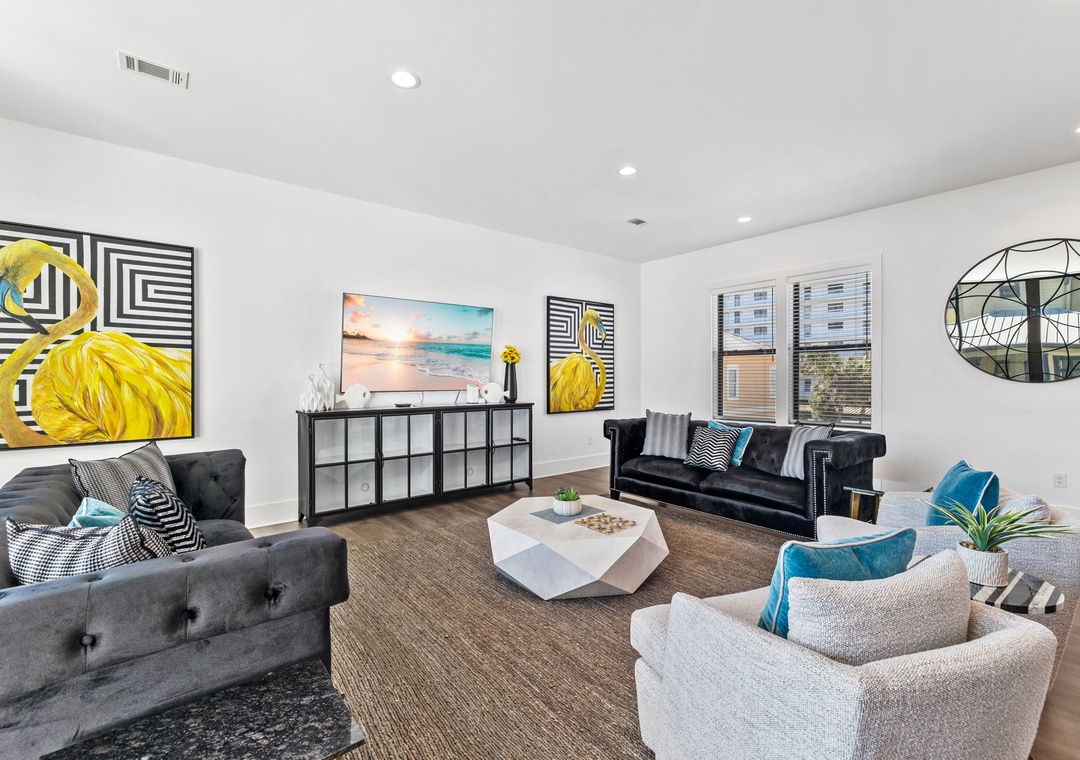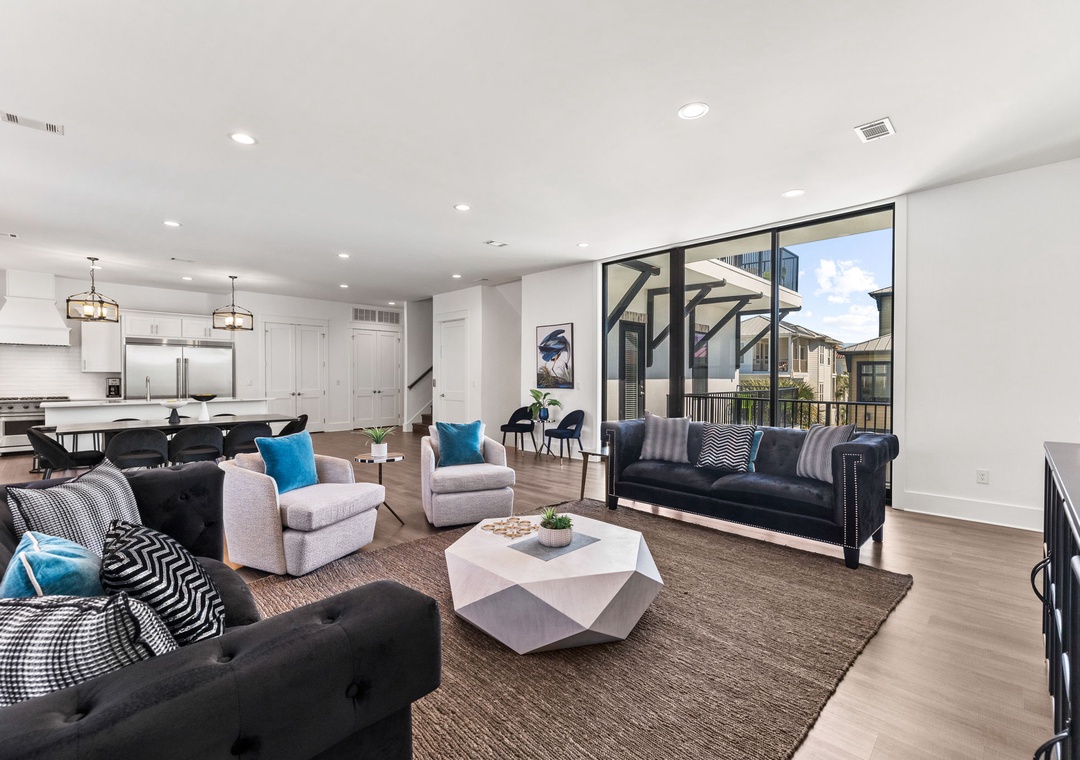 2ND FLOOR LIVING ROOM: This spacious living area is bathed in natural light, creating a warm and inviting ambiance. Sink into the plush seating arrangements of 2 couches and 2 accent chairs while enjoying the outdoor view.