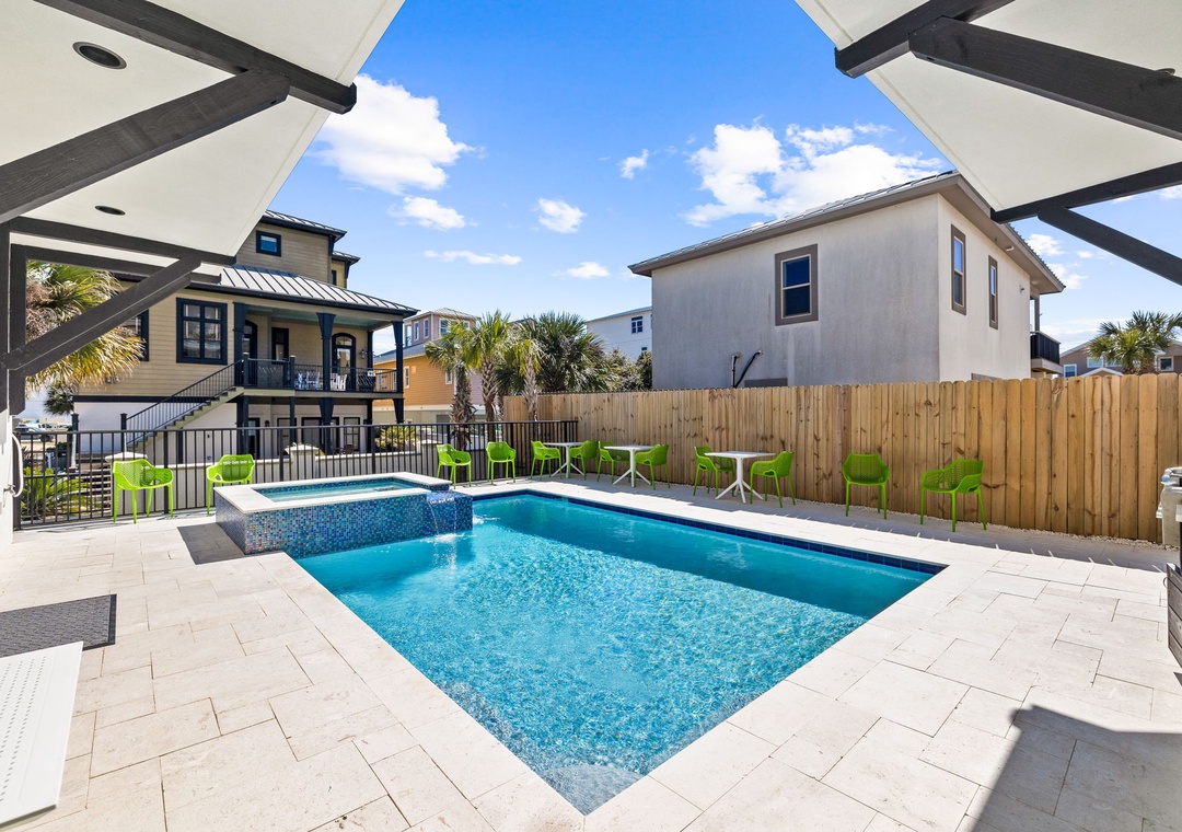 Private pool with attached hot tub/spa with heating options