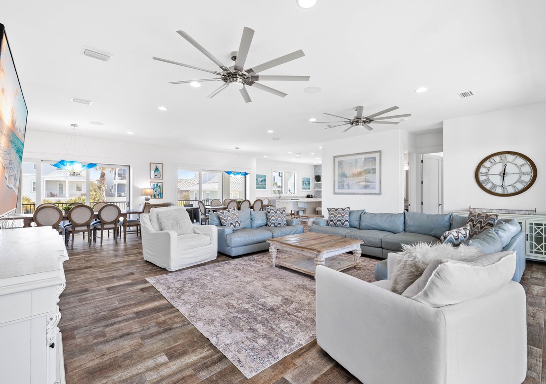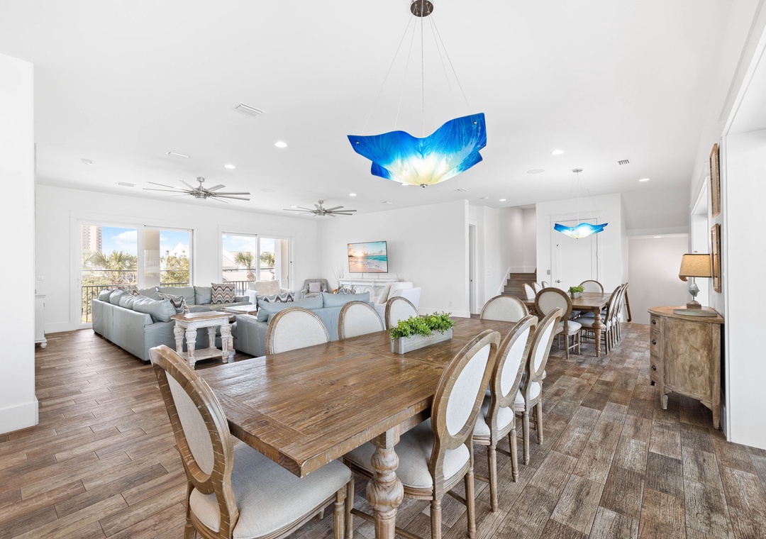 DINING ROOM: The dining room is part of the open-concept design, including 2 large dining tables with seating for 16.
