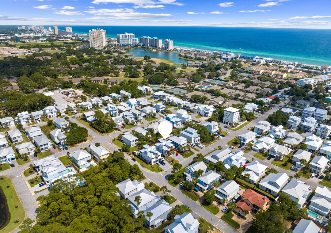 It’s located in The Villas of Frangista, a gated community in Frangista Beach that includes a neighborhood community pool. The community is located off of Scenic Highway 98, very close to the popular Whale’s Tail restaurant and beach access. There’s a private, designated beach access for you right outside of the community. Take the complimentary 6-passenger golf cart to the infamous Silver Sands Premium Outlet Mall (home to 110 designer and name-brand outlet stores), just 2 miles away. Also within 2 miles of the home are countless restaurants, a Winn-Dixie, a gas station, CVS Pharmacy, 2 large and popular public beach accesses, and much more!