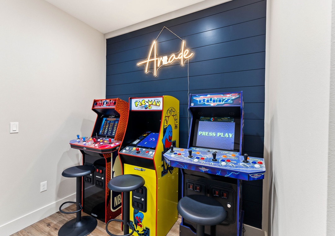 ARCADE GAMES: An assortment of free-standing arcade games are in the common area.
