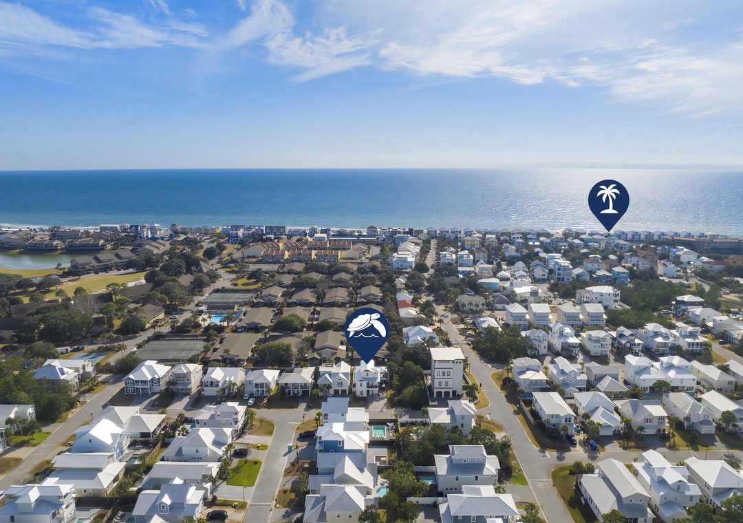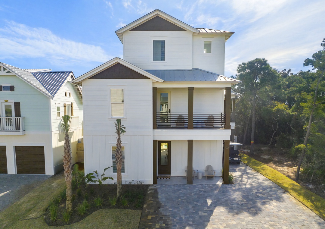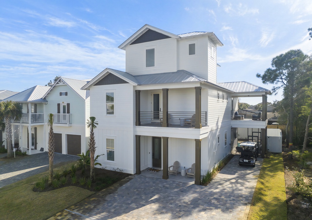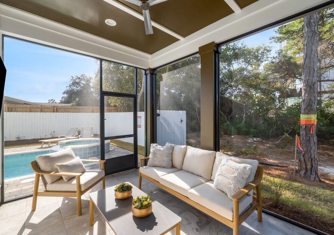 Outdoors, step into your serene coastal oasis with a private pool and spa, a screened-in patio with comfortable seating and an outdoor TV, and a fenced backyard complete with a firepit and cornhole setup. A complimentary 6-passenger golf cart (LSV) makes it easy to reach the beach or explore nearby spots such as Silver Sands Premium Outlets, Grand Boulevard, Destin Commons, and local favorites like Pompano Joe’s and The Surf Hut. With its elegant design, resort-style amenities, and prime Miramar Beach location, Grateful Getaway offers an unforgettable coastal experience for every guest.