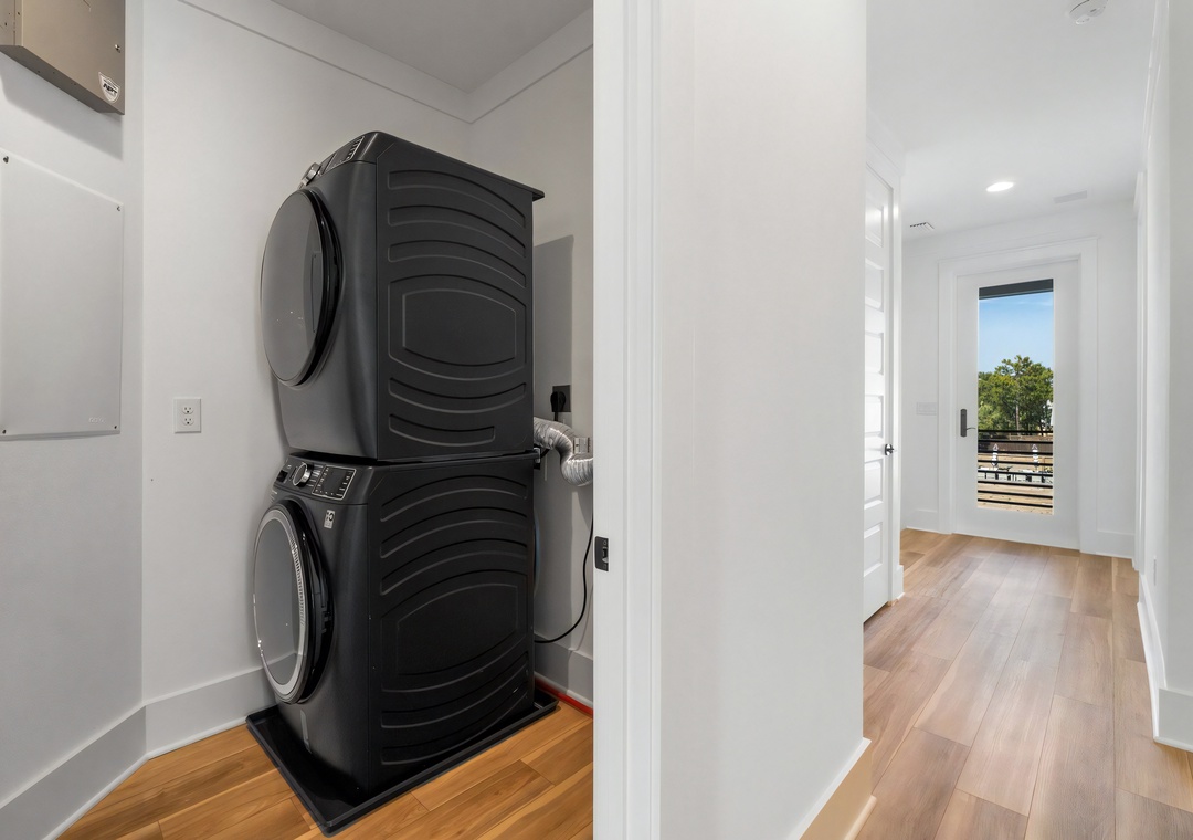 Laundry: The laundry room is located on the 2nd floor and includes a stackable washer and dryer.