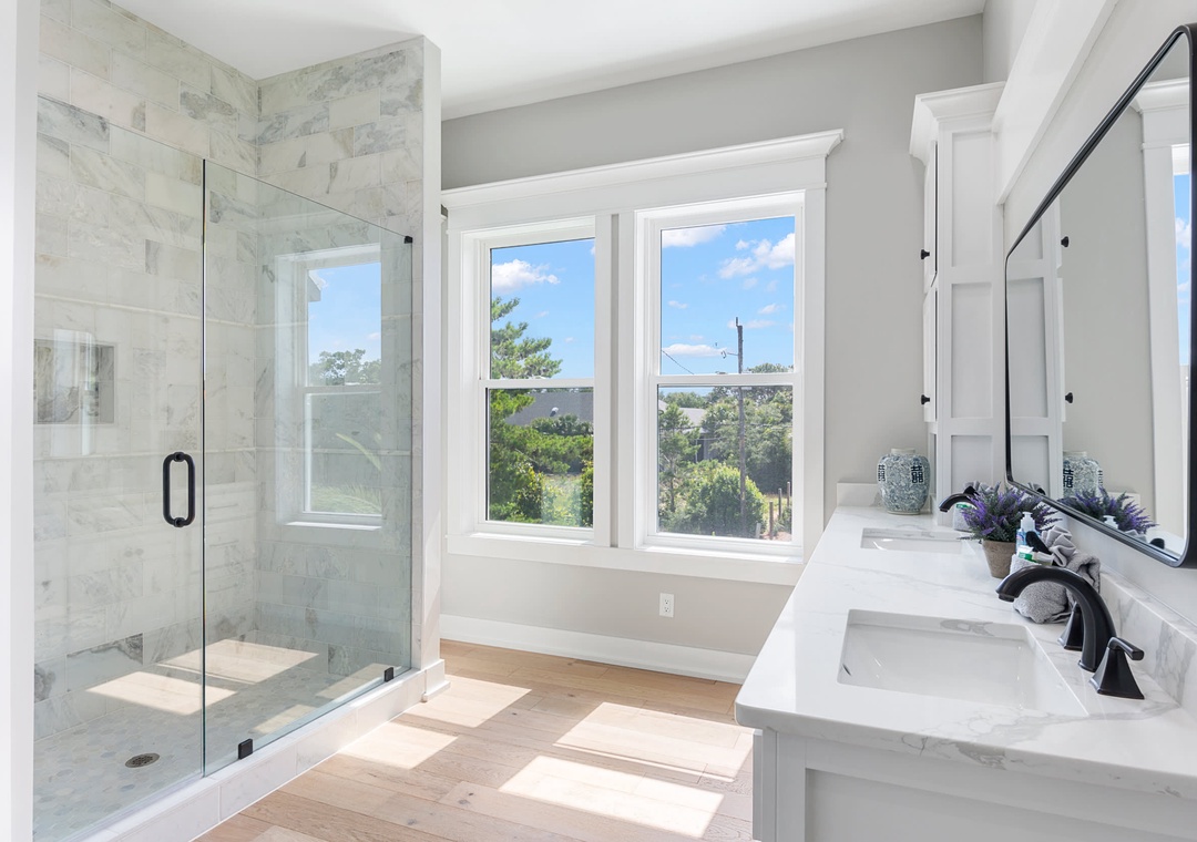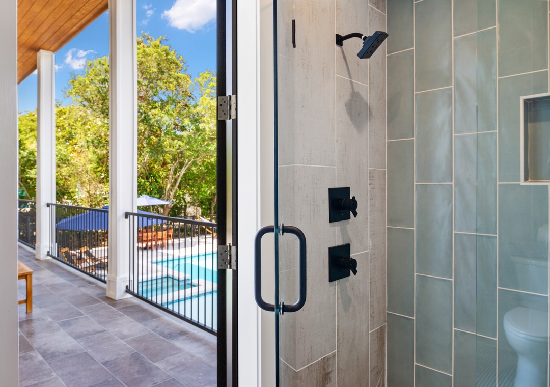 BATHROOM #8: On the first floor outdoor covered porch is a full bathroom with a stand up shower! Perfect for rinsing off after the beach!