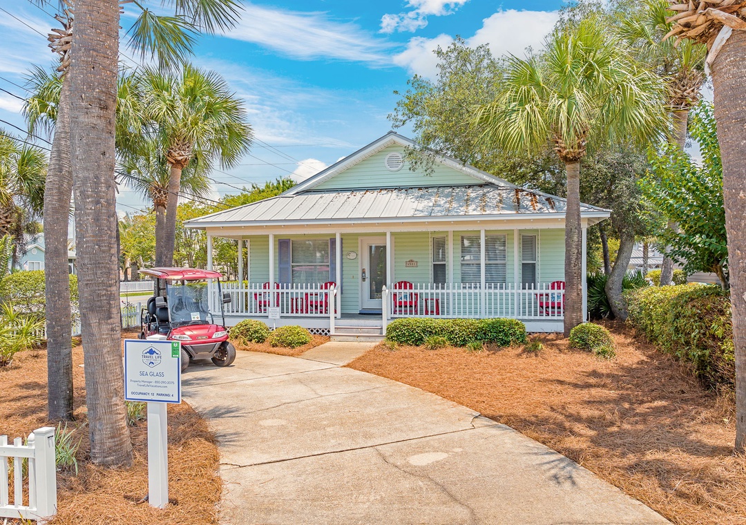 Sea Glass is a stunning 4-bedroom, 4-bath home located in the highly sought-after Crystal Beach neighborhood of Destin, comfortably sleeping up to 12 guests. Just 0.4 miles from the beach, this home offers the ultimate coastal escape. Reach the sand in a few minutes on the complimentary 6-passenger LSV. Step outside to a private backyard oasis with a sparkling pool, perfect for relaxing in the sun or unwinding after a day at the beach. The carriage house adds extra space and privacy, creating a serene retreat for everyone to enjoy. Situated in the heart of Destin, you'll find everything you need for the perfect vacation just a short distance away. Within a mile, enjoy a variety of restaurants, a gas station, the popular Destin Commons shopping mall, Publix, Walgreens, and more!