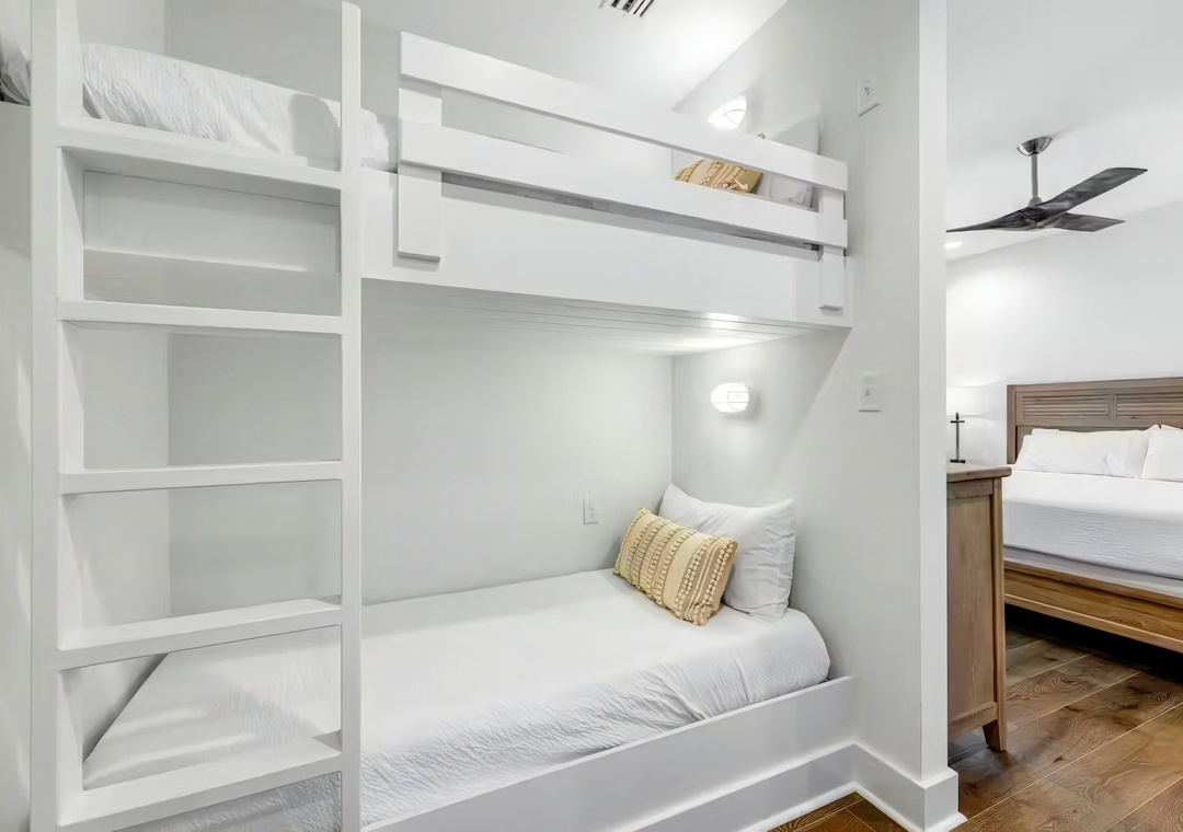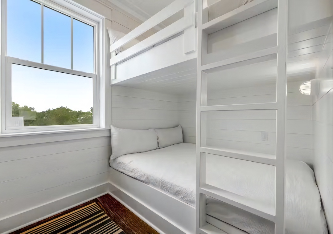 Bedroom #5: This bedroom includes 2 custom-built queen/queen bunks and opens into the 3rd floor lounge, creating a cozy area for kids to relax.