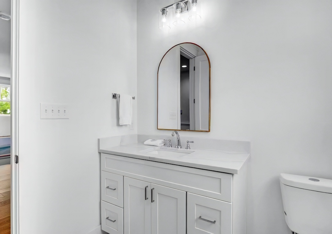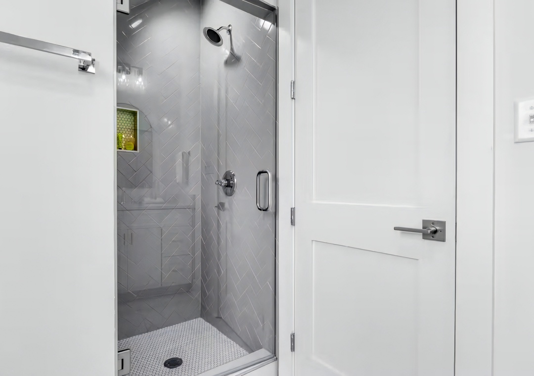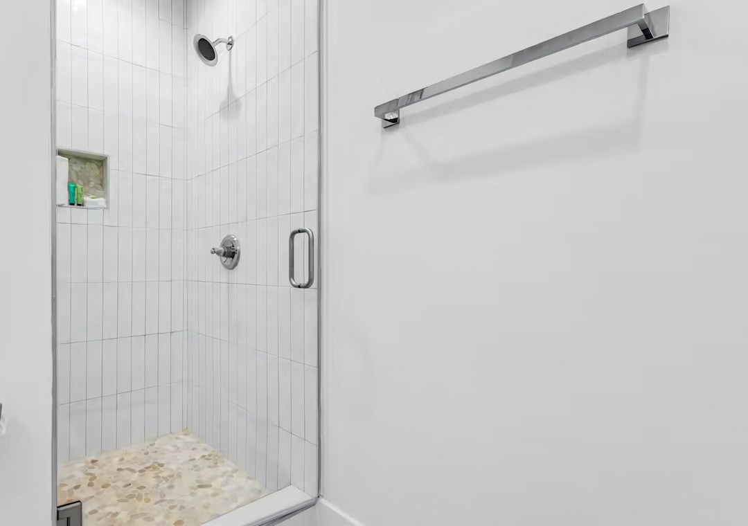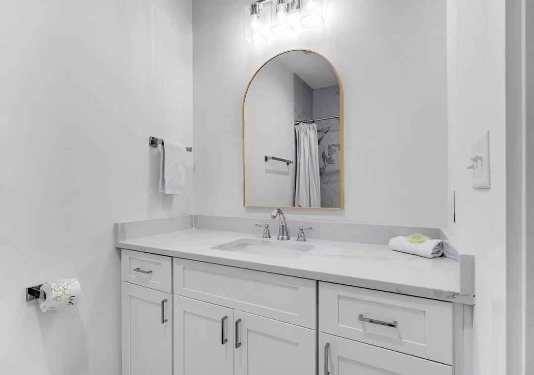 Bathroom #5: This bathroom is right off the 3rd floor lounge and includes a single vanity and large walk-in shower for Bedroom #5.