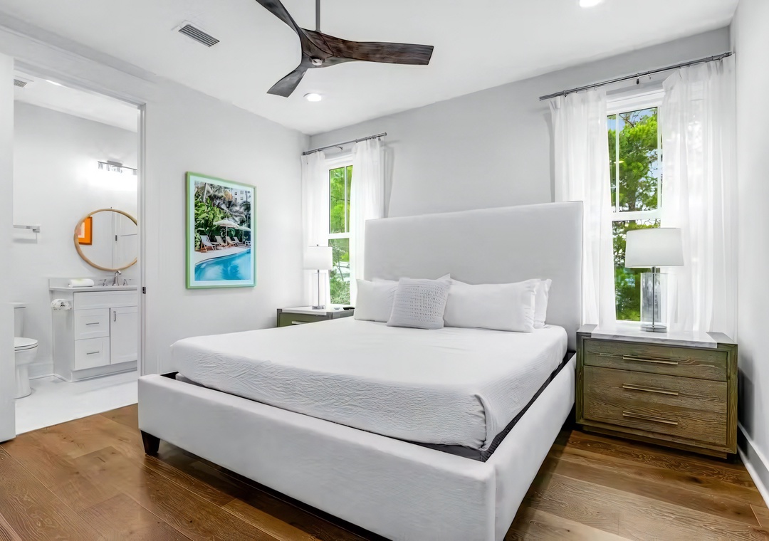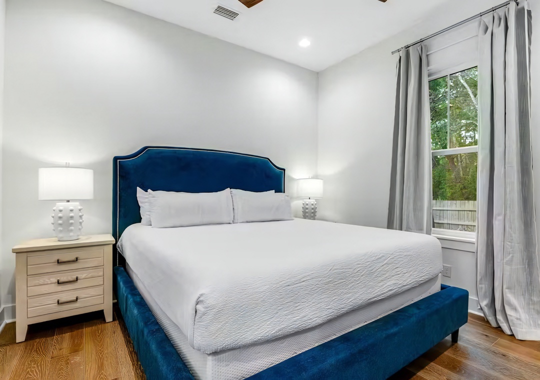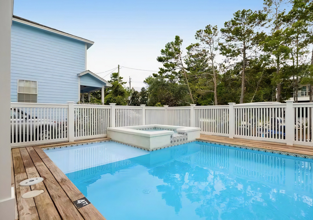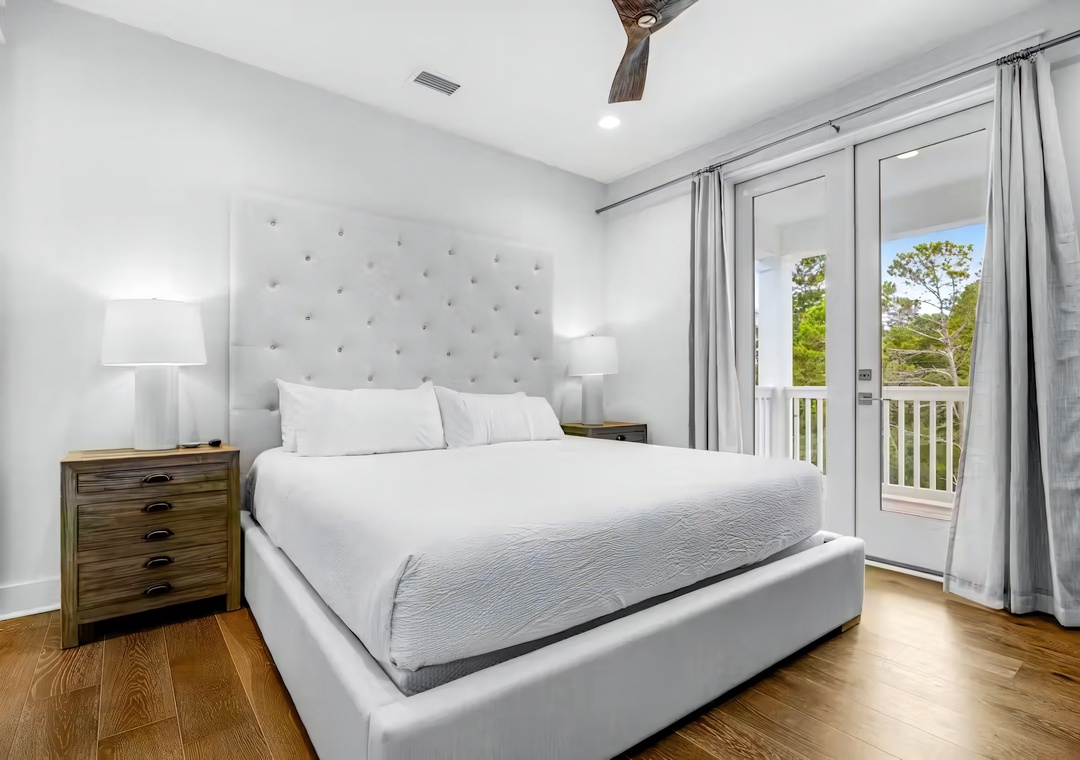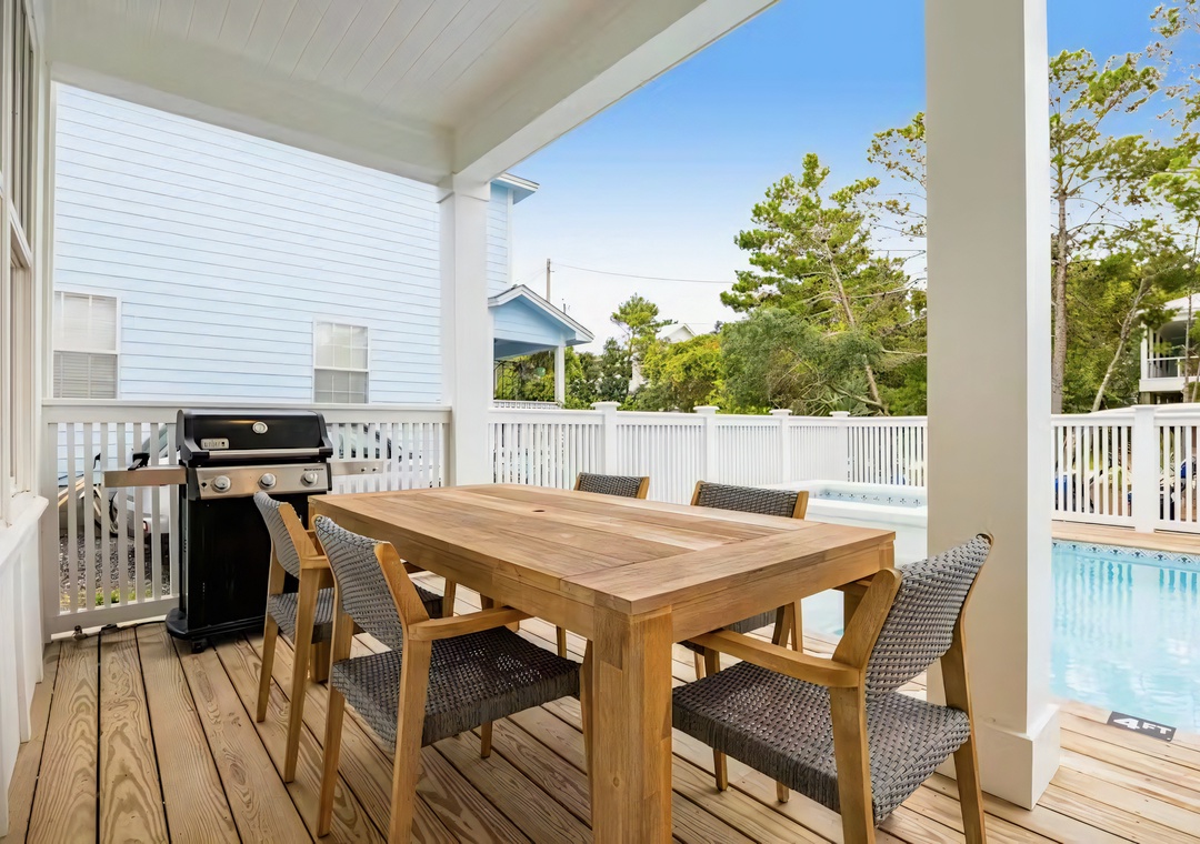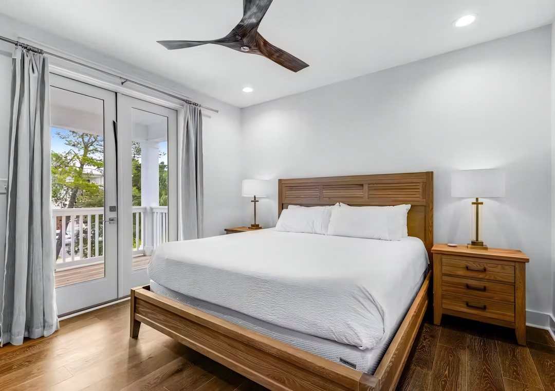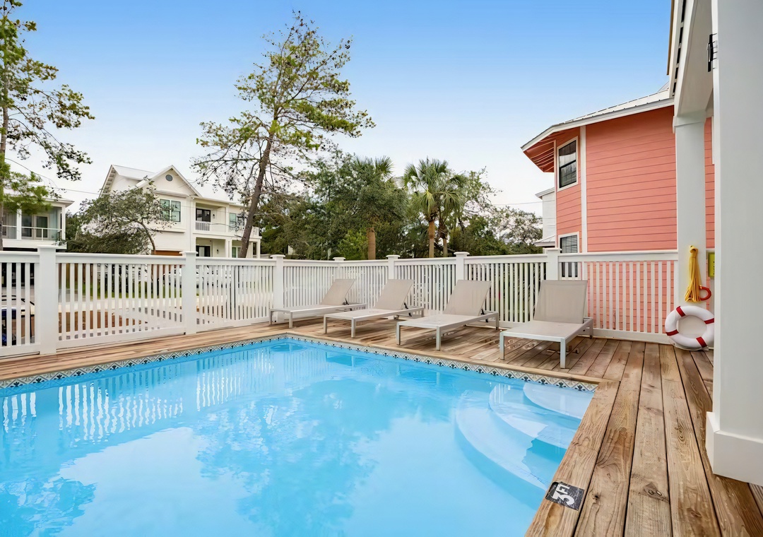 French glass doors open to an inviting outdoor escape designed for lingering afternoons and calm evenings, with a private pool and spa framed by comfortable loungers and a covered patio ideal for outdoor meals. Public beach access at Eastern Lake and Walton Dunes is just a short ride or walk away, while the complimentary 6-passenger golf cart (LSV) makes it easy to explore local favorites like Café 30A, The Perfect Pig, and Old Florida Fish House. Whether spending the day by the pool, at the beach, or enjoying the peaceful surroundings, Sunny Side Up delivers a relaxed and memorable 30A vacation experience.