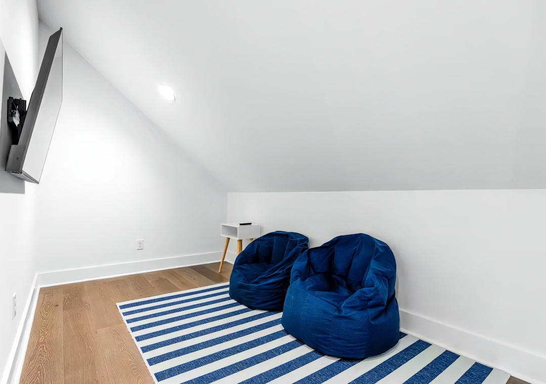 Kids’ Loft: The kids’ loft offers a cozy hangout space with plush beanbag seating and a mounted flat-screen TV, making it the perfect spot for movies, games, or quiet downtime.